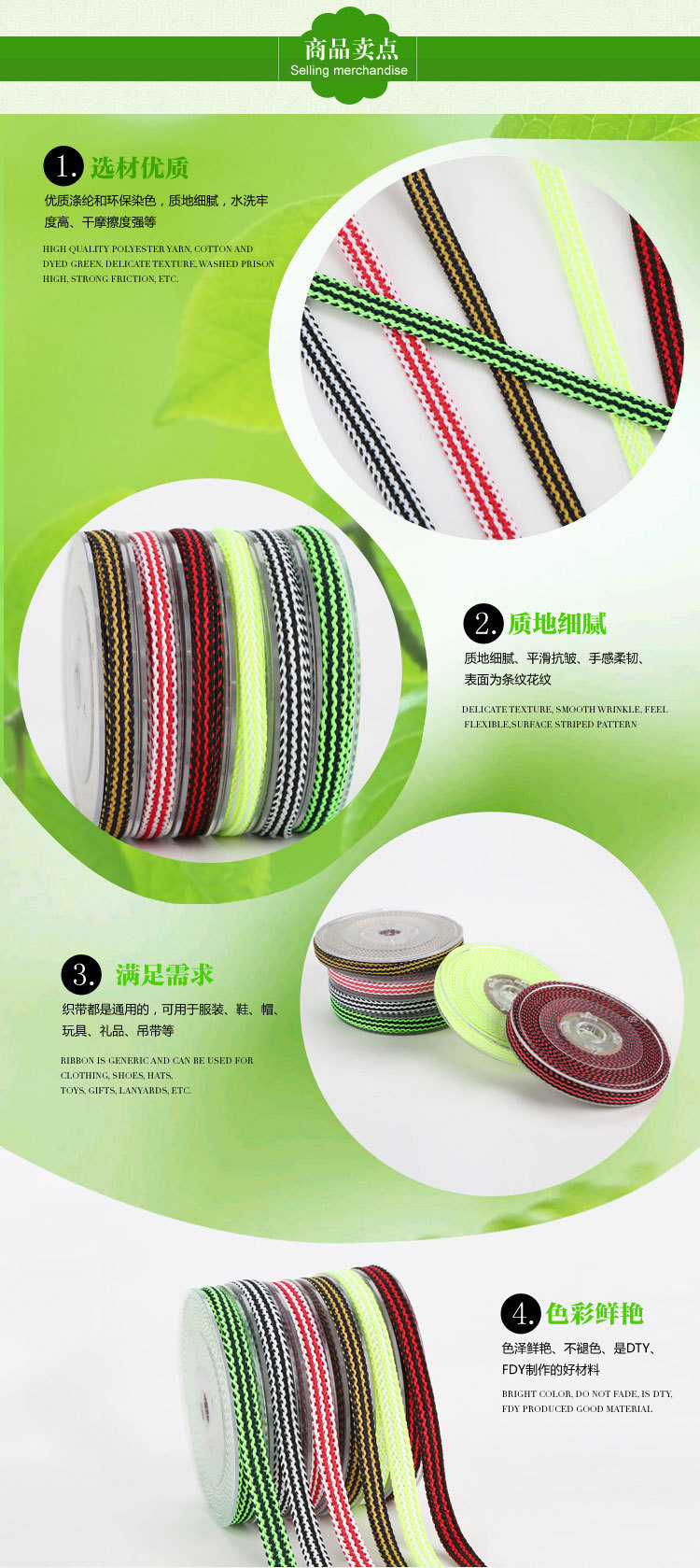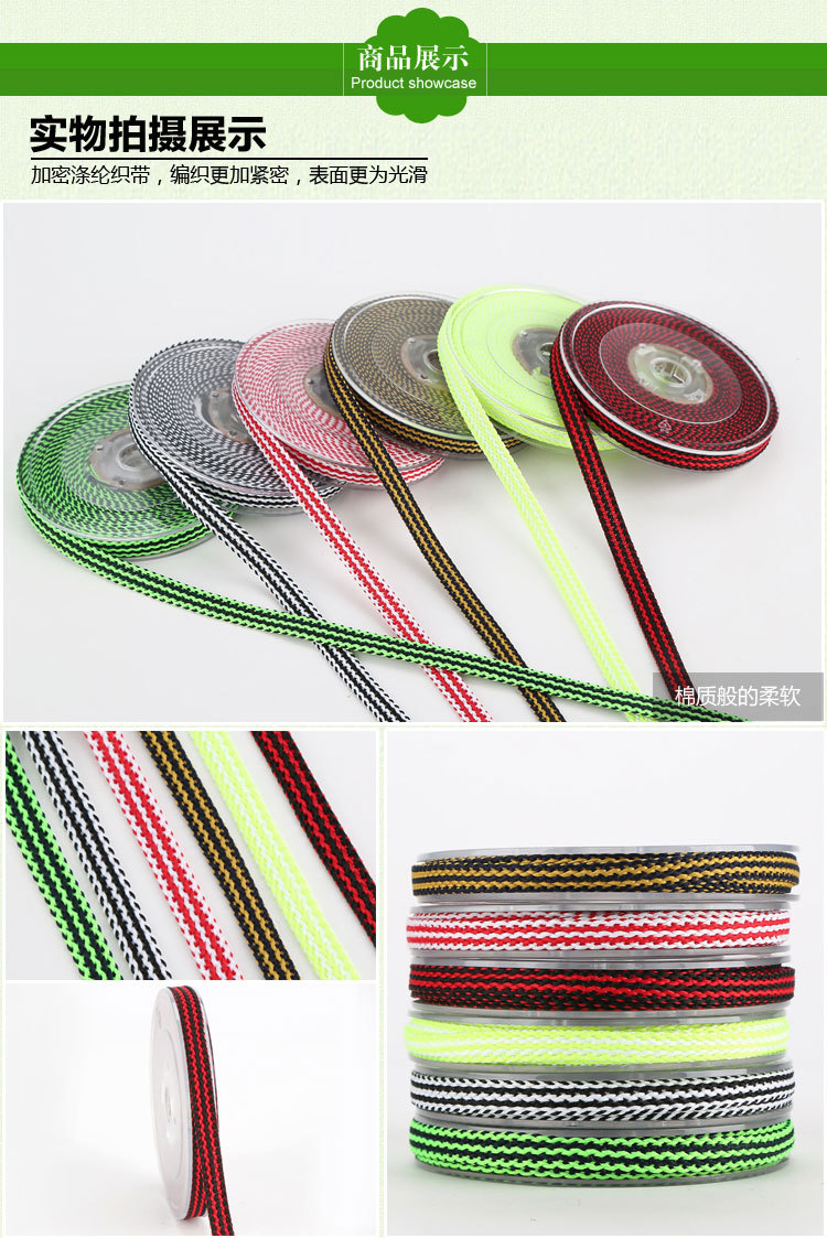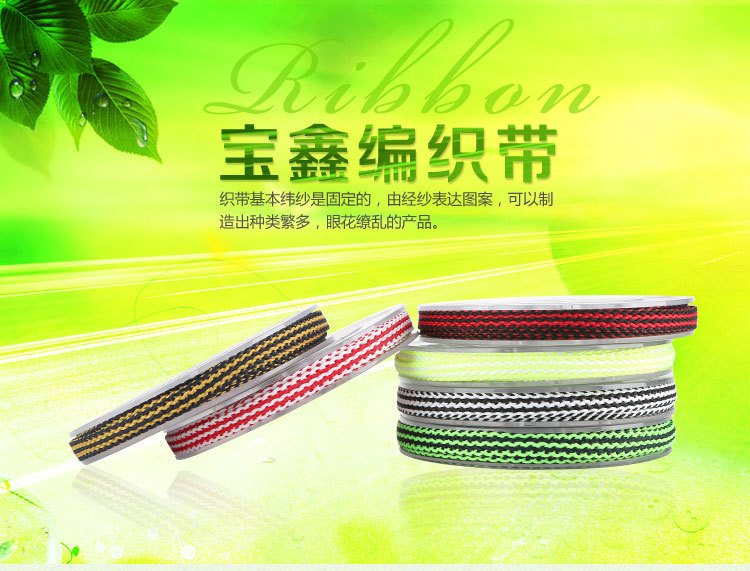 主營產(chǎn)品:提花織帶,韓國織帶,編織帶,仿尼龍織帶,緞帶/羅紋帶,子母織帶,熱轉(zhuǎn)印織帶,間色織帶