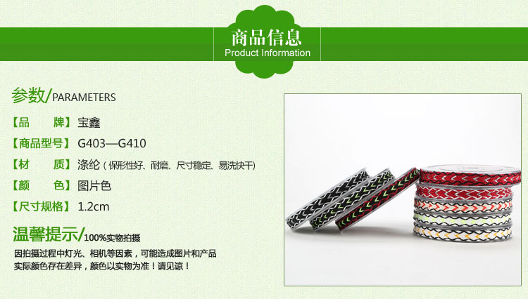 主營(yíng)產(chǎn)品:提花織帶,韓國(guó)織帶,編織帶,仿尼龍織帶,緞帶/羅紋帶,子母織帶,熱轉(zhuǎn)印織帶,間色織帶